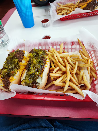 Modernly nostalgic, clean, spacious, plenty of seating and parking, friendly staff, paid $35 for 3 people. Food tasted good, filling. We wish they would steam their hotdog buns that would made them perfect. They have a pretty simple menu: burgers, hotdogs, fries, and fish sandwiches. It’s not an extensive menu, they keep it simple. And every-time I’ve gone in there for lunch, it’s been packed. Good time to go is 11 am right before the rush. It would nice if their big sign outside up front would light up and mention there’s a drive-thru (I didn’t realize there was drive-thru).
